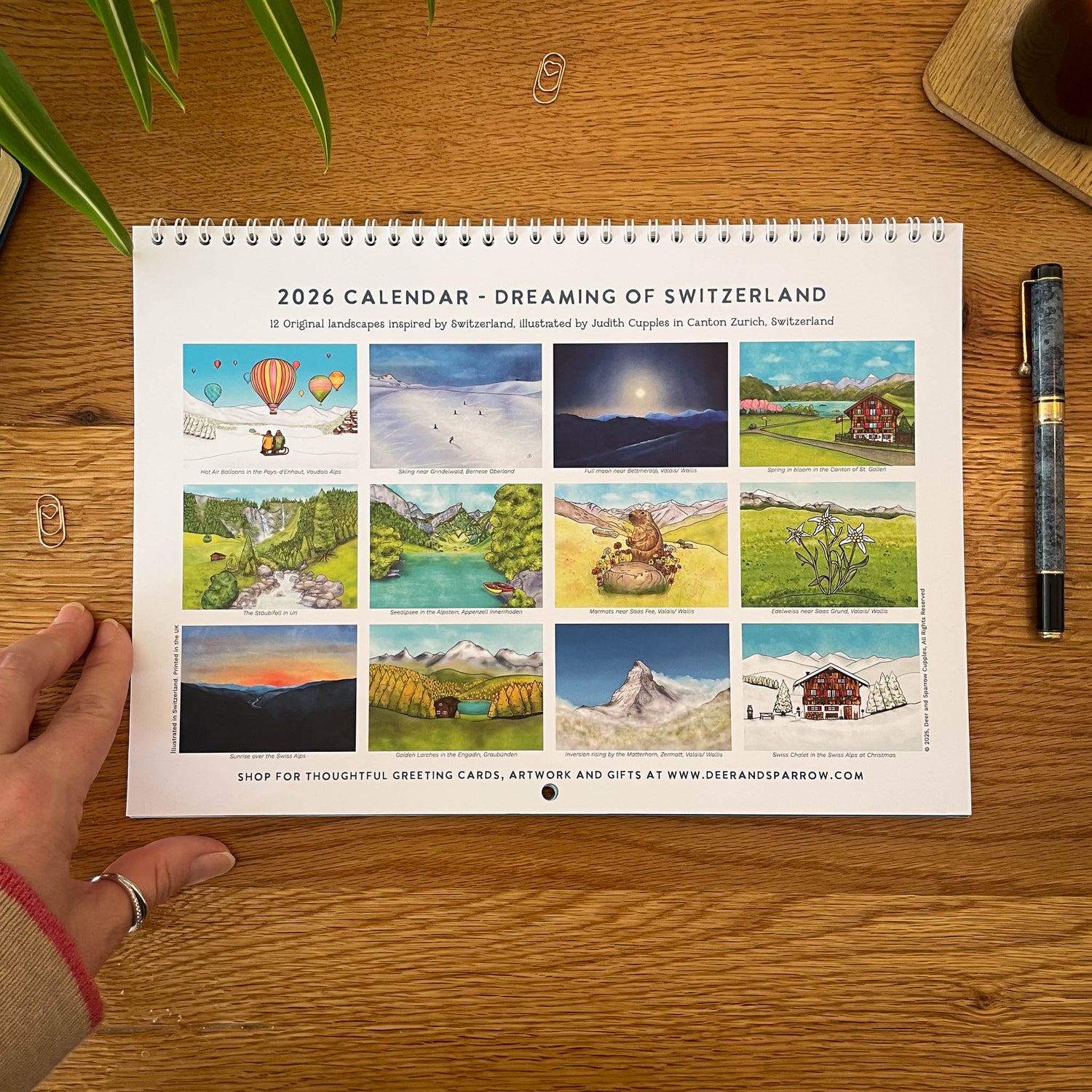 Each month features a different corner of the Swiss Alps - from the colour and lift of the hot-air balloon festival in Château-d’Oex (Vaud), to mirror-calm lakes like Seealpsee (Appenzell Innerrhoden), to feeding marmots in Saas-Fee (Valais) and, of course, the Matterhorn.