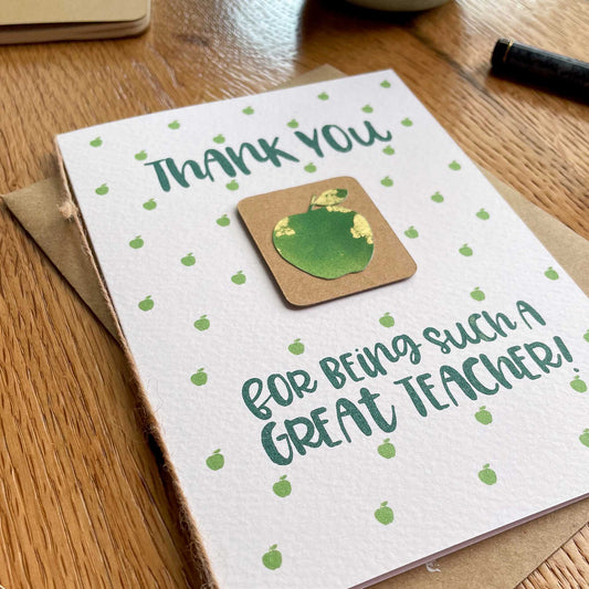Teacher Appreciation Card - Green Apple Design in English