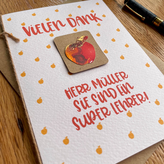 Personalised Teacher Appreciation Card in German - Red Apple Design