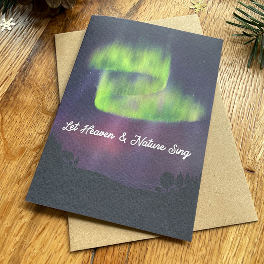 Let Heaven and Nature Sing Christmas Carol Card featuring The Northern Lights