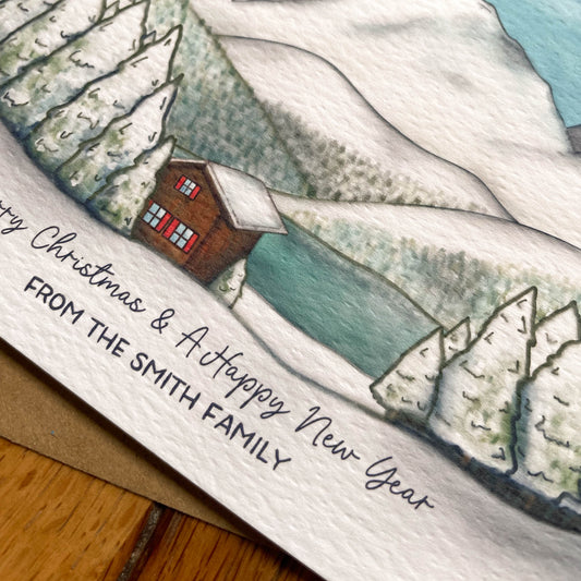 Set of Personalised Family Christmas Card with Snowy Mountain Scene, Alpine Lake & Mountain CabinRegular price From CHF 65.00Regular priceUnit price / per-