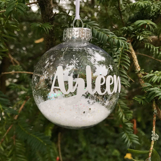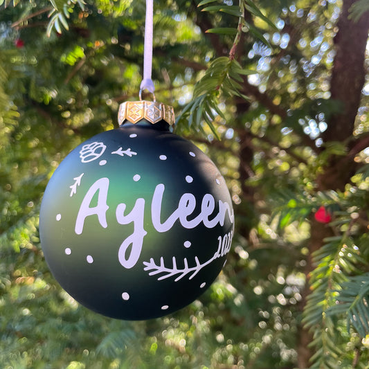 Winter in the Woods Themed Green Personalised Christmas Bauble