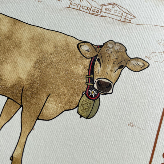 Swiss Cow Print: Enjoy the beauty of the Swiss Countryside with our Swiss Brown Cow A4 Print