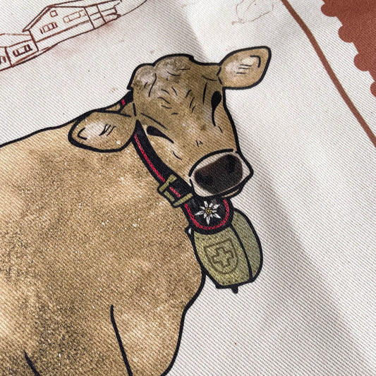 I love this new item and print from Deer and Sparrow! The quality is great and the cow brings a smile to my face and feels so Swiss and pretty each time I look at it!