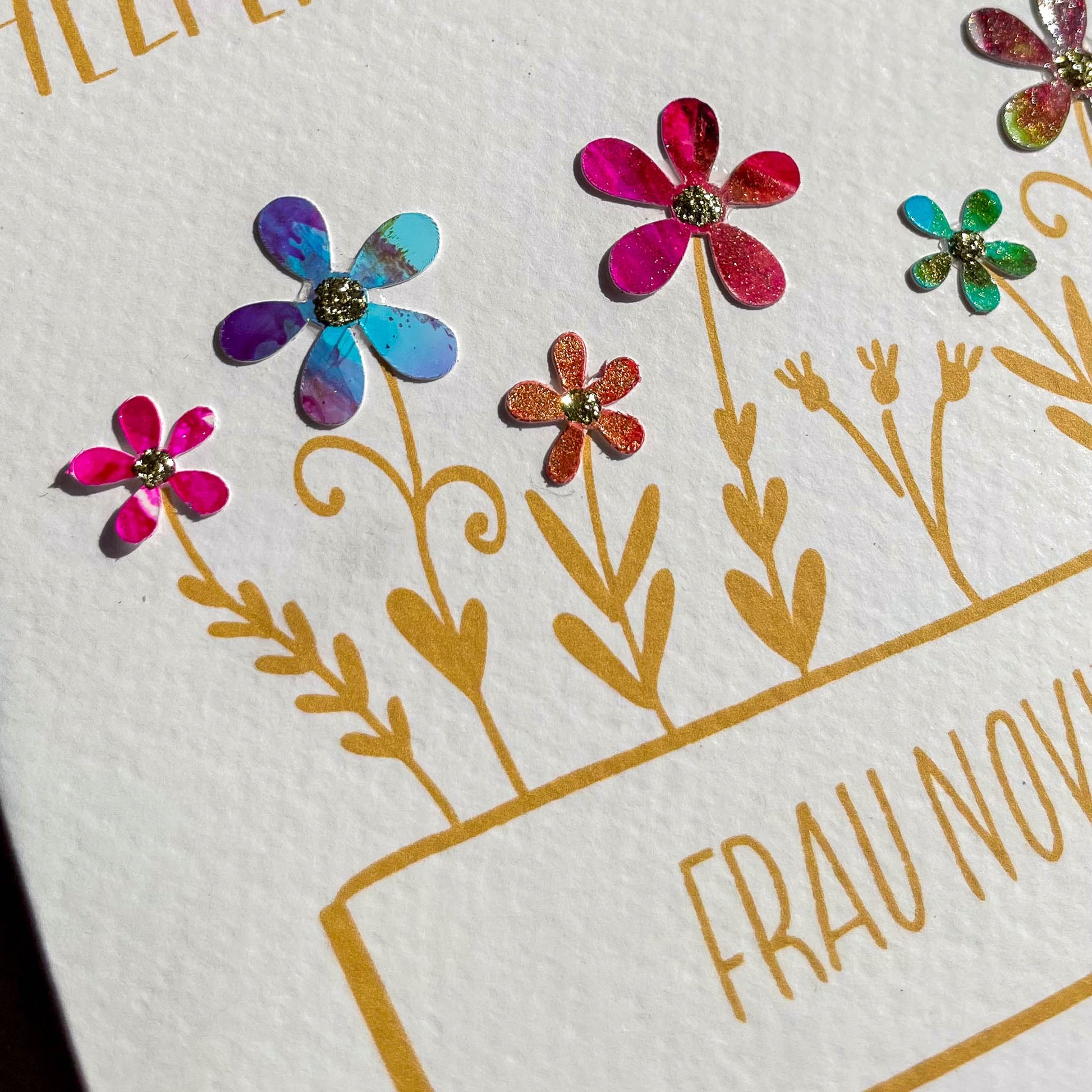 Each card is a true work of art! Made with love in Zurich, Switzerland, in small batches, every card showcases beautifully painted flowers, ensuring that each one is as special and vibrant as the next, adding a touch of colour and happiness to your thoughtful gesture.