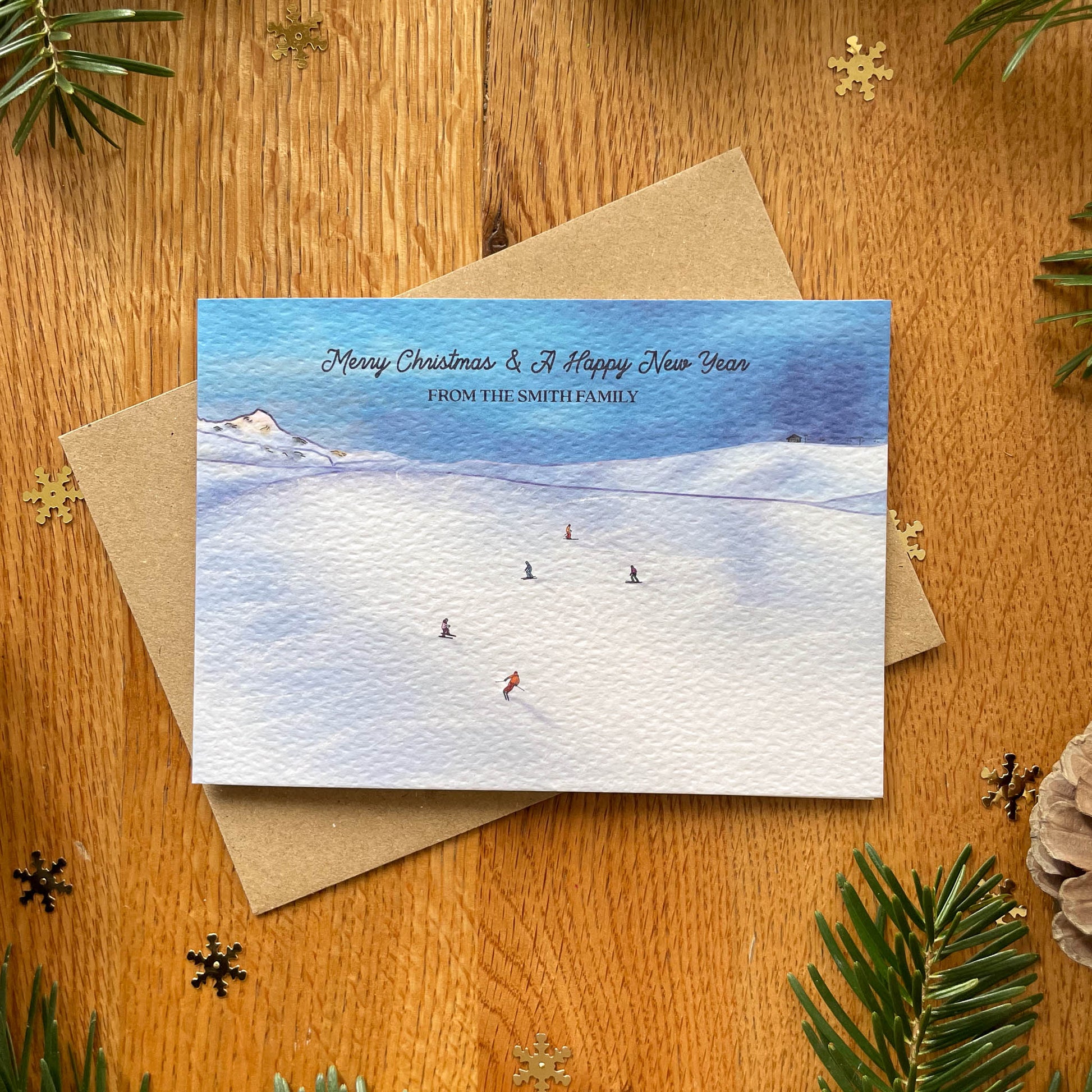 Personalised Family Christmas Card - Skiing in the Alps - Last Run